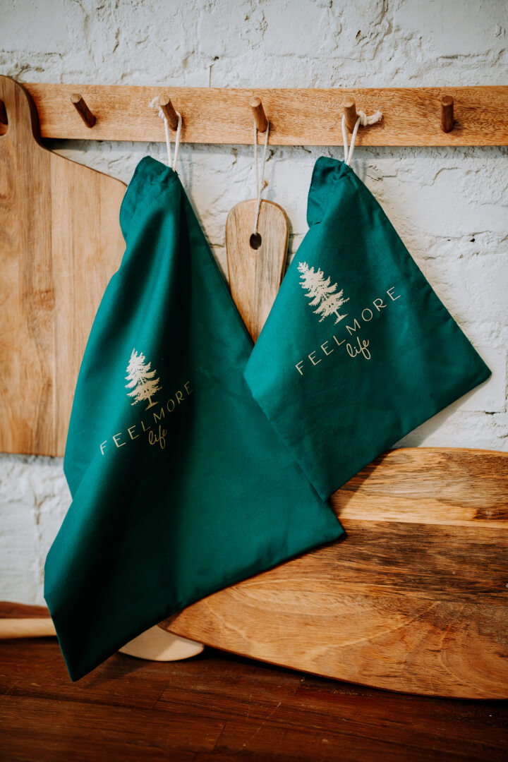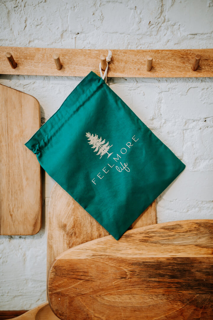 A Feelmore vendégházakban a reggelit ebben a zsákban szállítjuk ki a vendégeknek, így most ugyanazt az élményt viheted haza is.