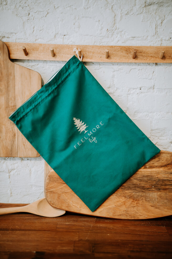 Az összehúzható zsinór segít frissen tartani a pékárut, a természetes zöld szín és a Feelmore life logó pedig a Feelmore vendégházak hangulatát hozza el az otthonodba.